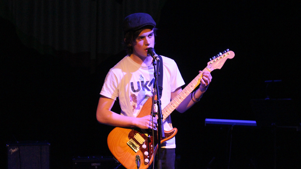 Ulrik Haugland forsøker seg her på gitar og vokal, men på grunn av stemmeskifte sleit han skikkelig med de høye tonene. Men morsom og underholdende ble det.