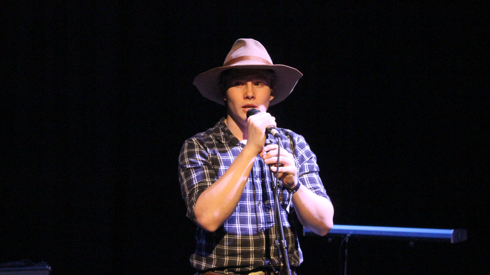 Per Arne Dramdal er mest kjent som countrysanger selv om han også fungerte som konferansier denne kvelden. Her synger 17-åringen «Three wooden crosses».